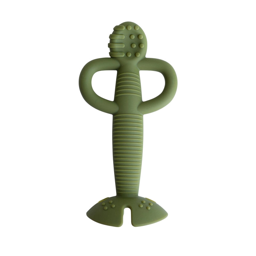 The NEW Busy Baby 2-in-1 Teether and Training Spoon eases baby's teething needs and aids in self-feeding. The Busy Baby Tether-ball fits right into the end of the spoon to easily hook it up to the mat! The NEW Busy Baby 2-in-1 Teether & Training Spoon was engineered by a mom for her child. This training spoon delivers the soothing function of a traditional teether but also serves to help your child develop the skills of self-feeding. Utilizing functional silicone grips on the handle helps baby hold and maneuver the spoon, while the grips on the spoon head hold just enough food on the spoon for baby to master self-feeding. We know that teething and feeding can be difficult, so to ensure your baby's safety, we have engineered extended arms on the spoon to help prevent your child from choking.