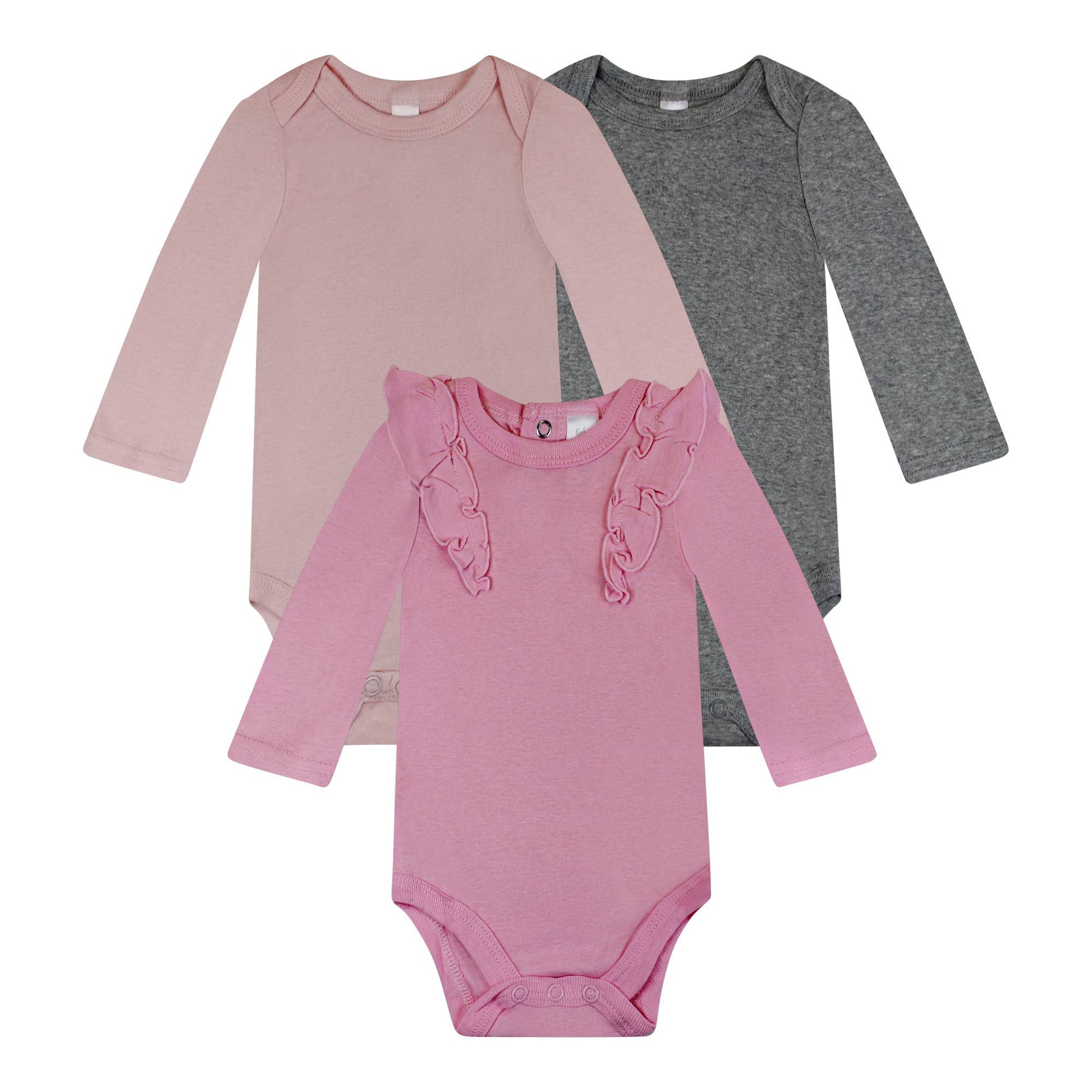 Long Sleeve Bodysuits - Pink Ruffle Solids