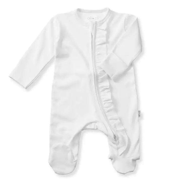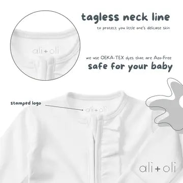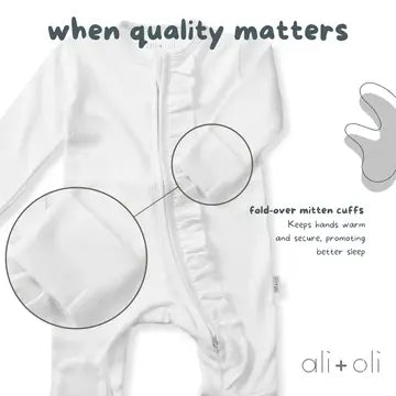 Wrap your little one in comfort and cuteness with our 100% organic cotton waffle fabric, featuring an adorable ruffle along the 2-way zipper (not on the back). Designed in a soft, modern neutral blush color, it's as cozy as it is stylish. The tagless design has size info stamped onto the fabric for added comfort. Made with Oeko-Tex-certified, azo-free dyes, this breathable footie includes fold-over mittens for scratch prevention, making it ideal for daytime wear. 100% Organic Cotton | Oeko-Tex dyes AZO-free Footed One-Piece with Zipper Double-zipper style for easy diaper changes The zipper cover on the interior protects delicate skin Tag-less Stamped logo, and Fold over Sleeves Baby gifts, Baby Clothing, Christmas, Kids Clothes, Organic Baby Clothes, Baby Pajamas, Newborn.