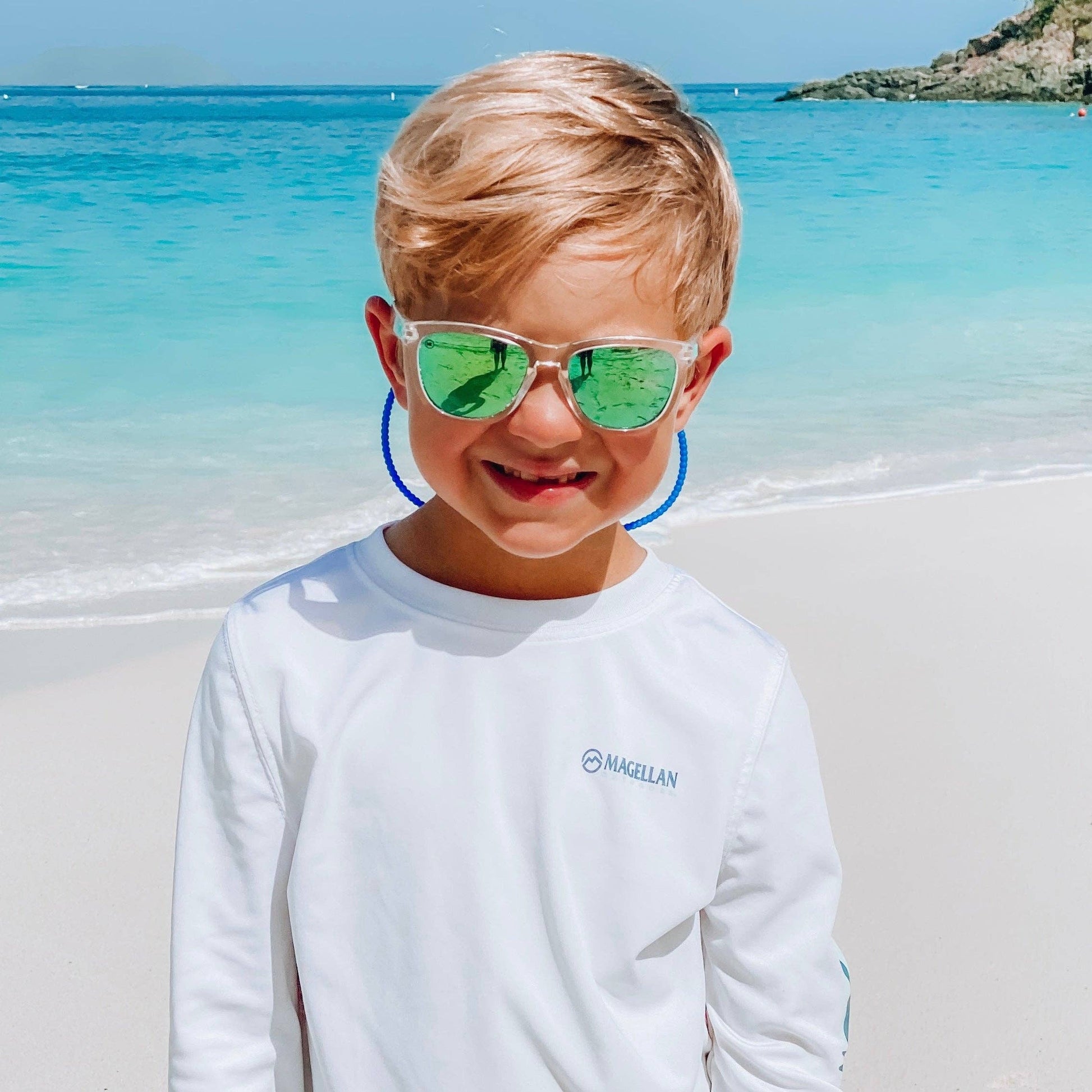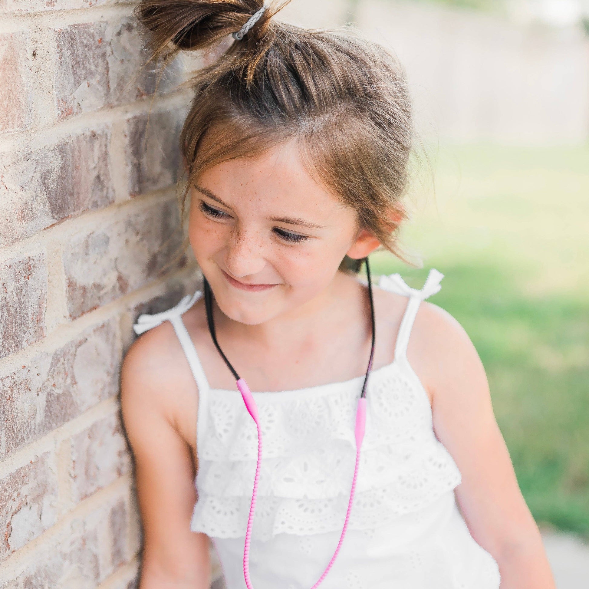 Directions: slide the arms of your eyewear into the silicone ends of the Cutie Strap.