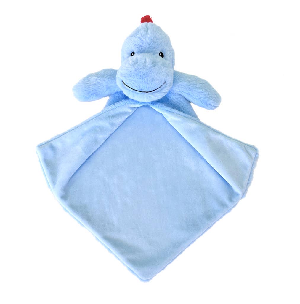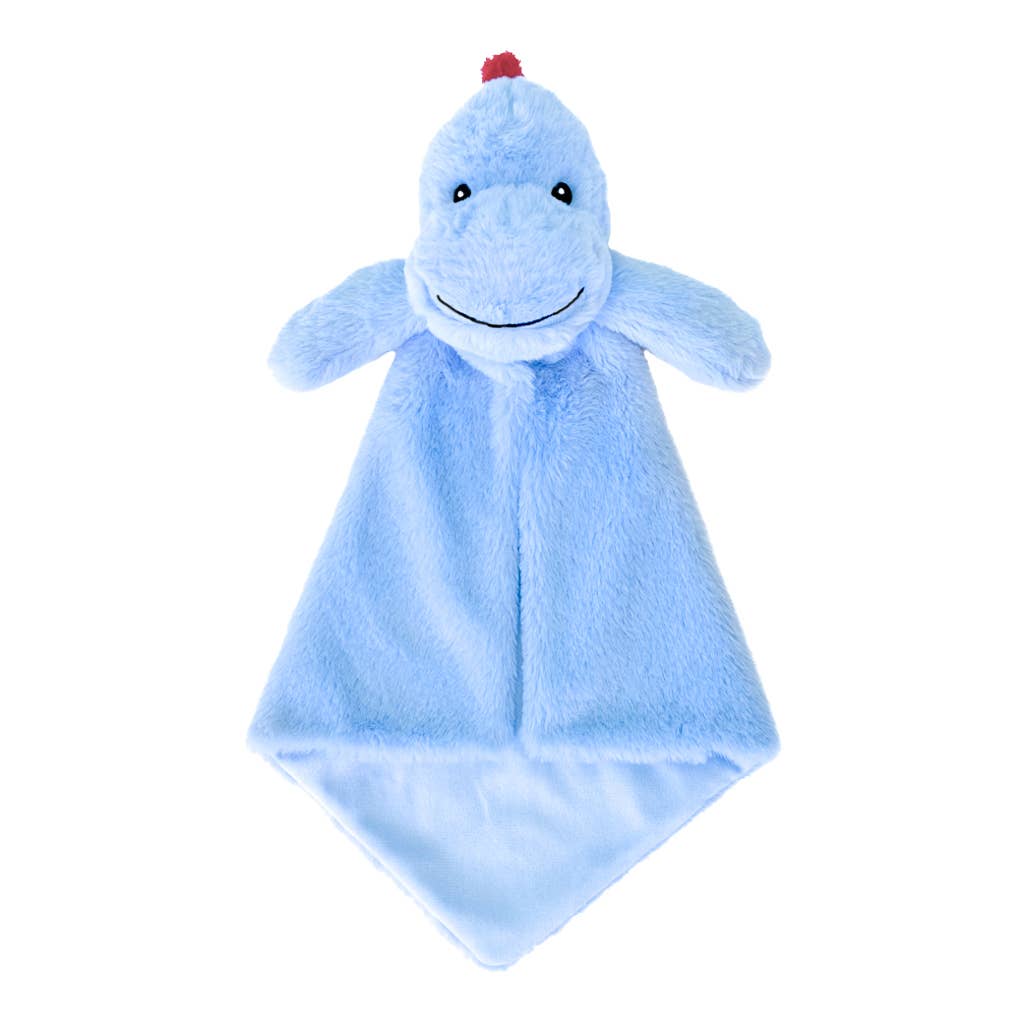 Blueberry has a fluffy blue body with black eyes and red scales on his back.
