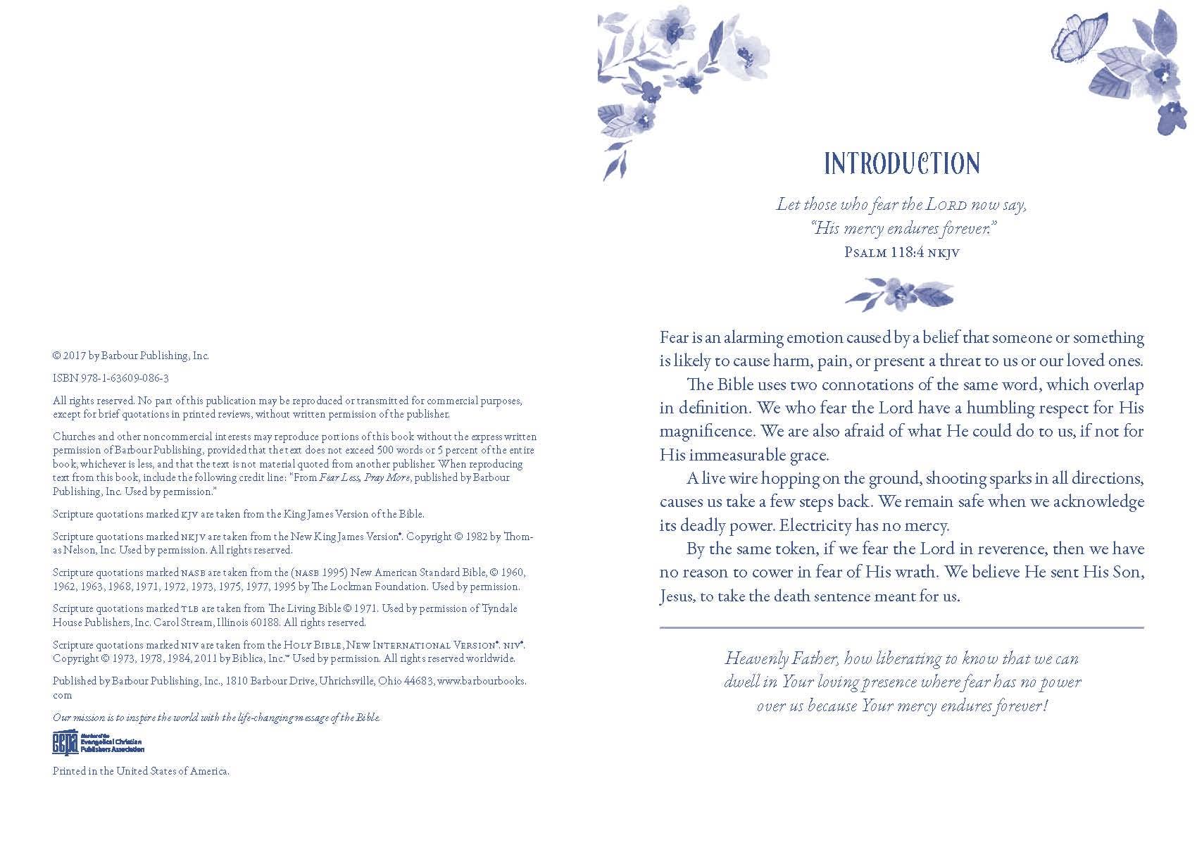 This lovely devotional guide features180 readings and prayers designed to help alleviate your fears as you learn to place your trust in the Almighty God, who gives you courage. Inspired by this promise from God's Word: "Be strong. Take courage. . .because God, your God, is striding ahead of you. He’s right there with you. He won’t let you down; he won’t leave you” (Deuteronomy 31:6 MSG), Fear Less, Pray More reinforces the truth that with God, you can live courageously every single day—whether you fear the unknown, aging, rejection, losing a loved one, being alone, or something more.