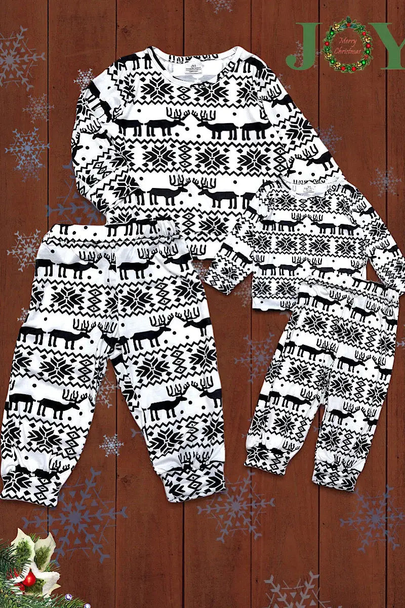 KIDS BLACK & WHITE DEER & SNOWFLAKE PRINTE PAJAMAS SET.