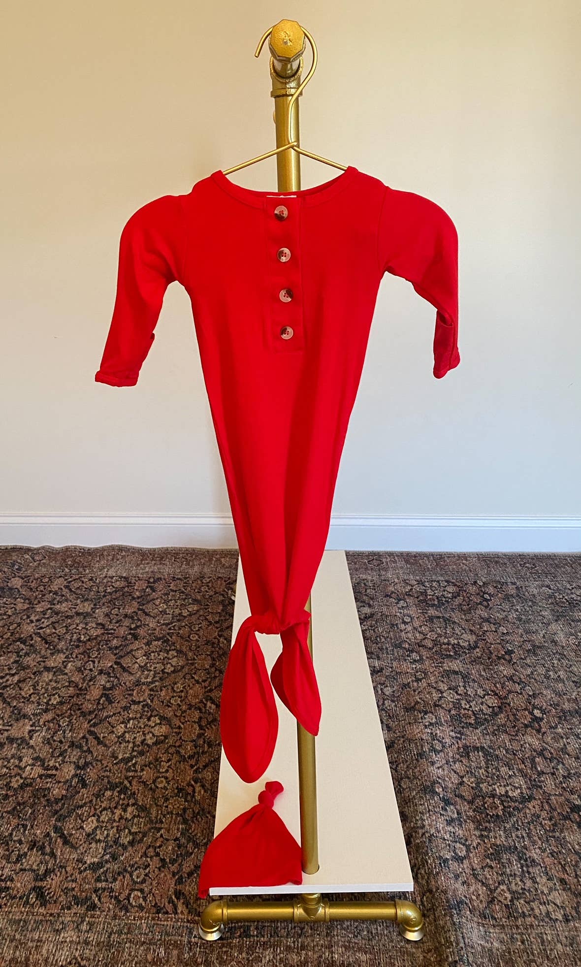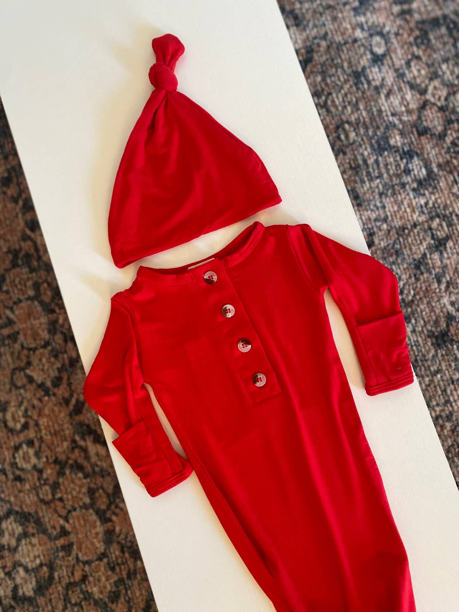 Knotted Baby Gown Set - Holiday Red
