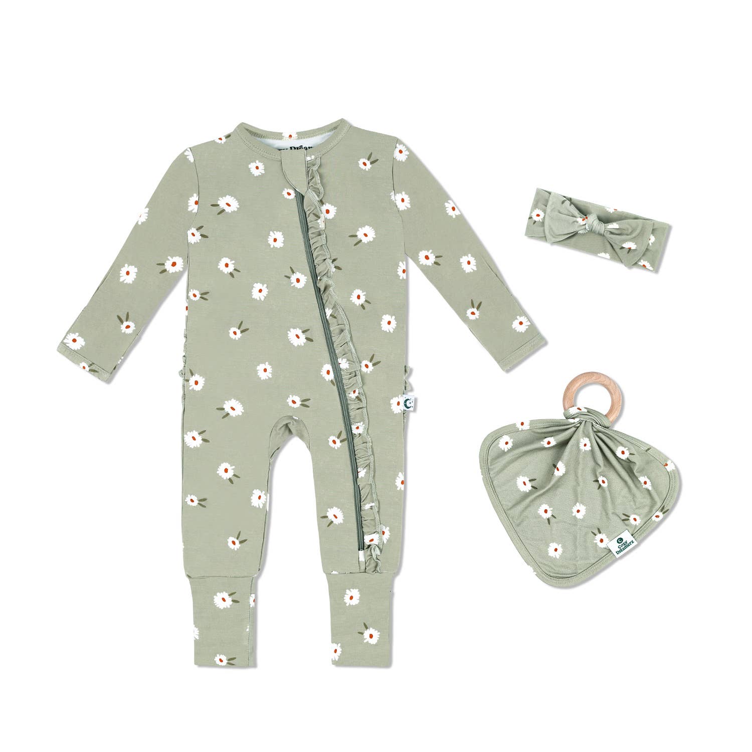 Our cozy sleepers are made from bamboo, are gentle on skin and perfect for any season, which is great because cozy sleepers last much longer than your average pajamas due to bamboo's amazing ability to stretch as your little grows. This sleeper features a ruffle on the front and back of the sleeper.
