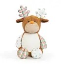 Cupcake has a corduroy brown body, decorated, patterned antlers, arms and feet and black eyes.