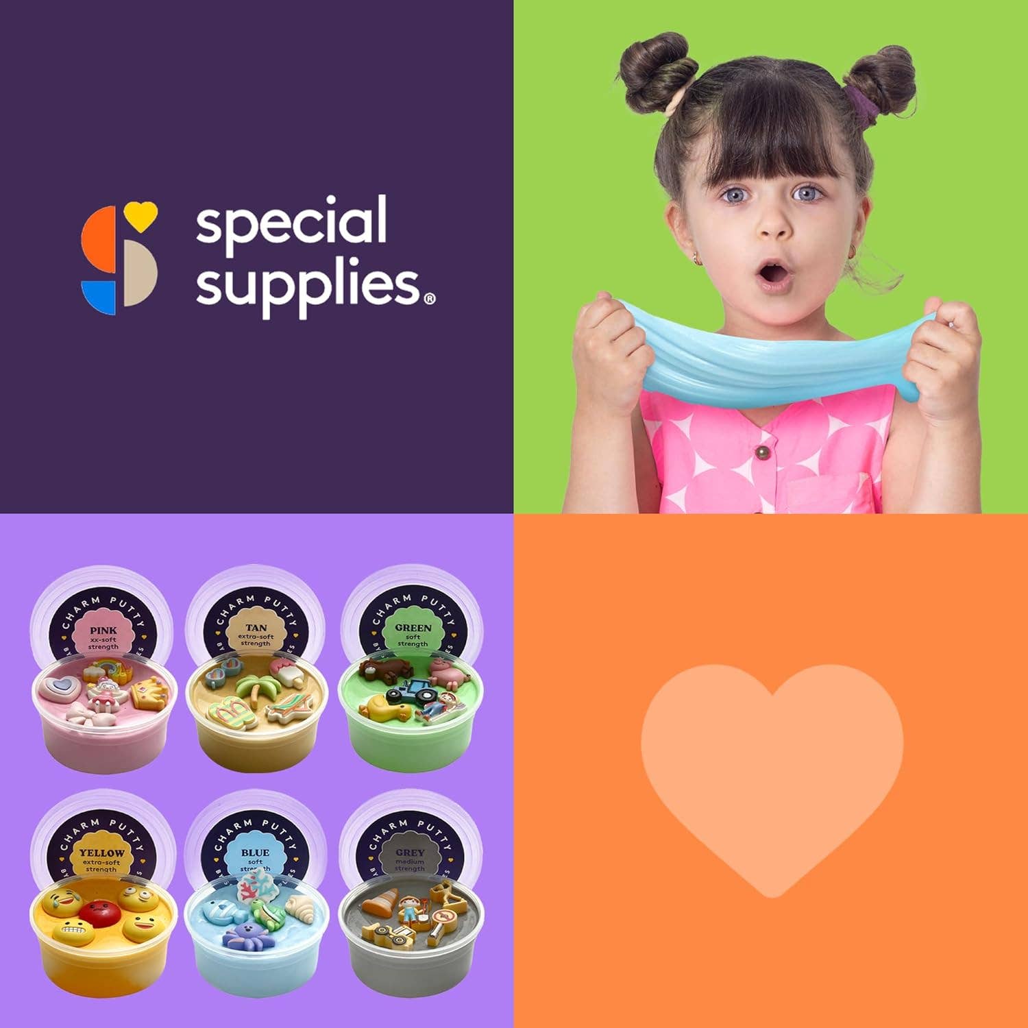 Therapy putty provides hands-on support for early learning, stress relief, injury recovery, and even sensory stimulation for kids and adults. When it comes to keeping our hands busy it’s important to have soft, yet engaging outlets that are gentle on your fingers and joints but provide the kind of hands-on stimulation that’s good for your mind and body. That’s why we developed Special Supplies Therapy Putty and paired it with soft, durable charms. These cute and colorful occupational putties are a wonderful way to keep young kids stimulated, or to help adults recover their strength and dexterity. And because they come in bright, fun colors that are more engaging, you’ll love finding ways to keep your kids active or relieve your own stress when those afternoons at work are wearing you down. Great for squeezing, pinching, pulling, and rough hands-on play, you’ll love to find new and creative ways to make our putty a part of your (or your child’s) day-to-day life. Product Details: * Interactive Therapy Senso