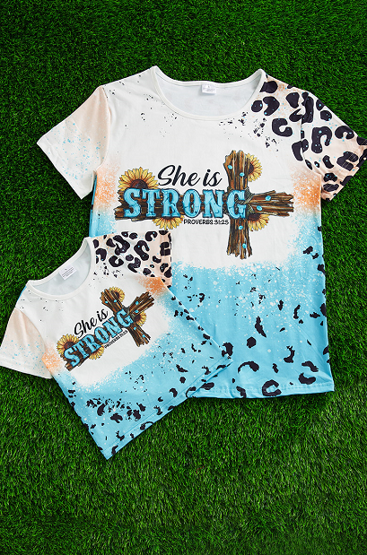 Show off your family's faith and strength with our She Is Strong/ Proverbs 31:25 Mommy & Me Tee's! Featuring the iconic proverb as a reminder of the power of women, let your little ones strut their strength in style. After all - she's strong 'nuff said! #girlpower!
