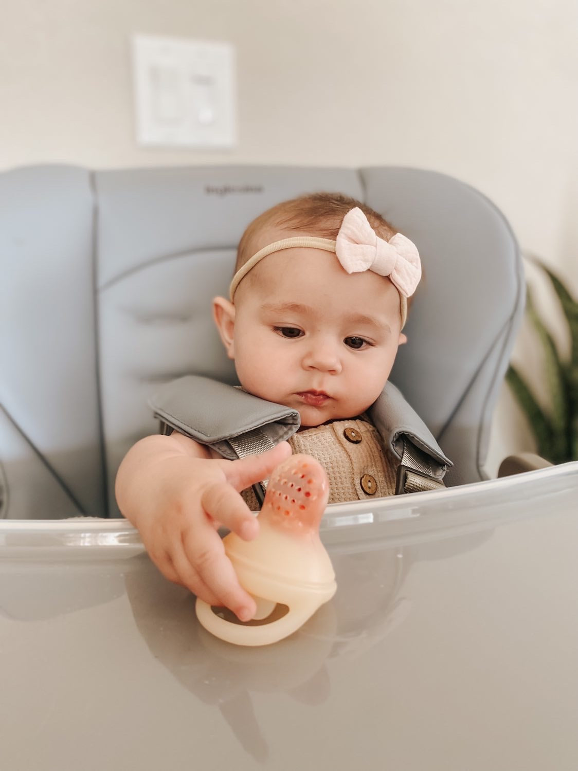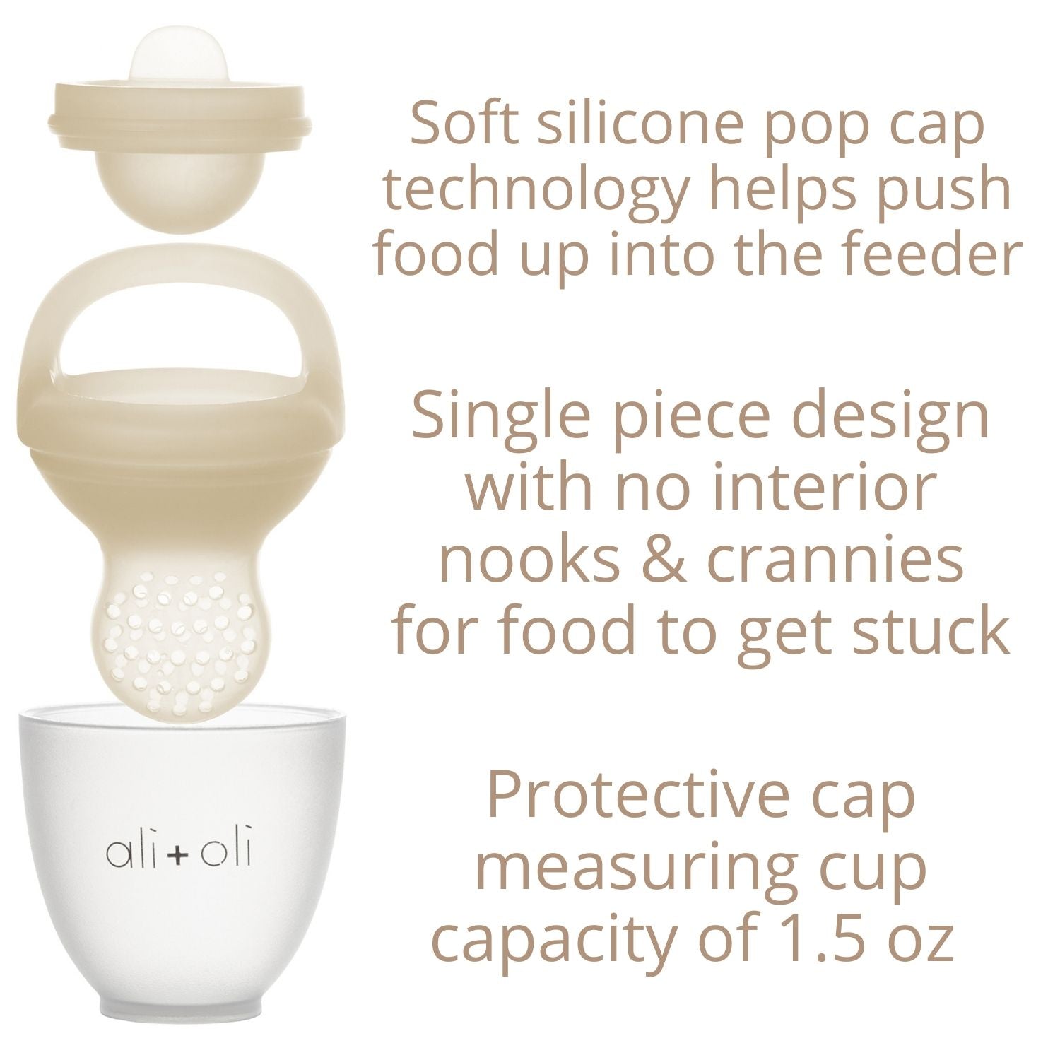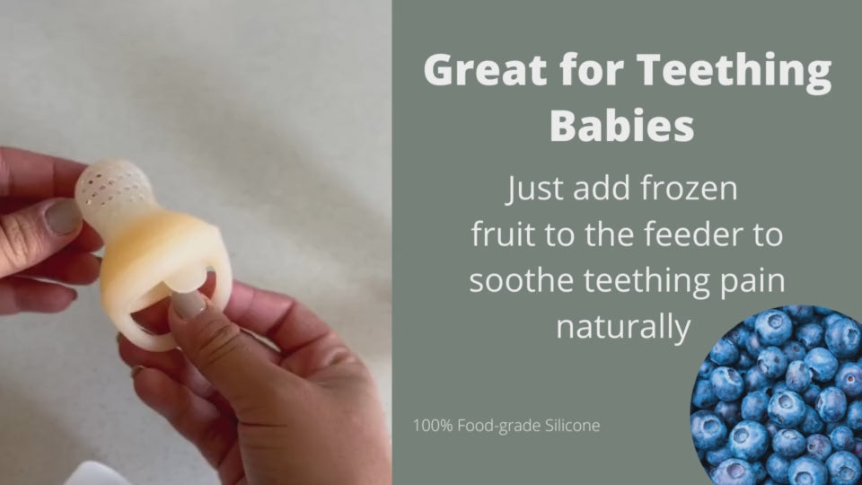 The BPA-Free Food Grade silicone feeder features 2 mm small holes that only allows tiny food particles to pass through for the baby to self-feed. Each feeder comes with a protective cap that keeps the silicone tip clean.