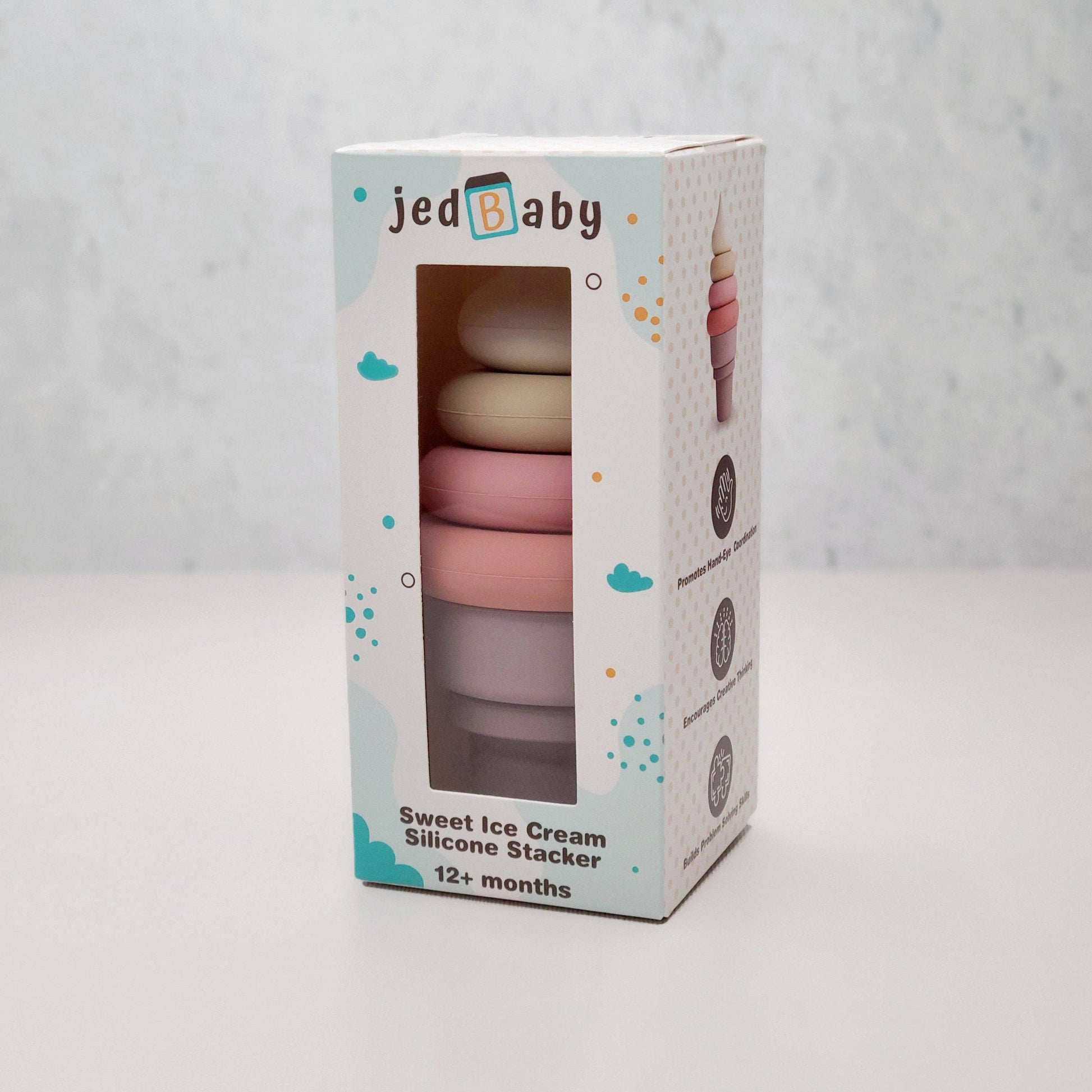 This whimsical silicone stacker toy is designed to captivate your little one's imagination while promoting fine motor skills and hand-eye coordination. Each textured layer resembles a delectable sweet treat, making stacking an irresistible and sensory experience. Our ice cream stacker toy is a sweet and delightful addition to your little one's playtime, offering endless hours of engaging and joyful exploration.