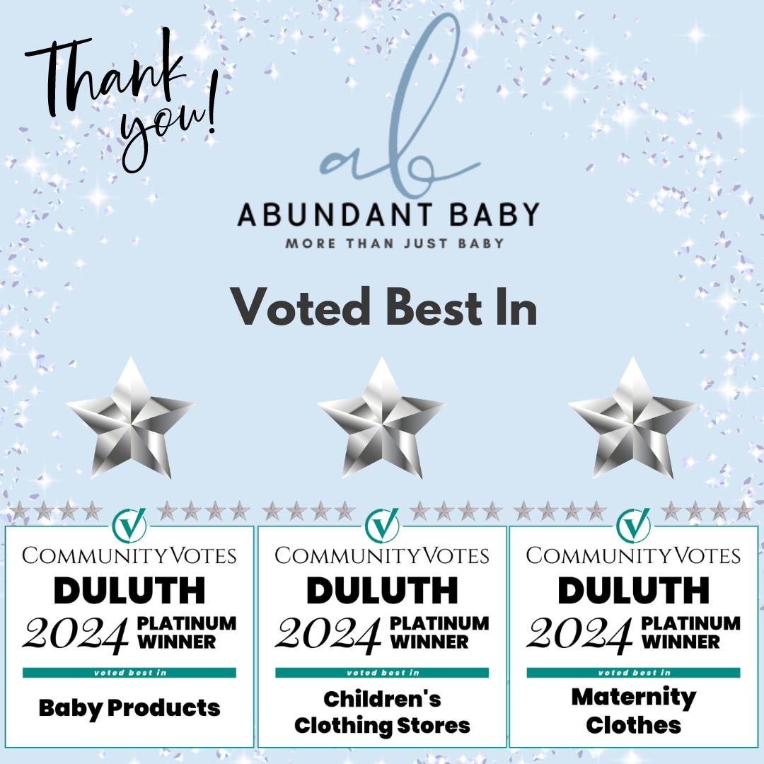 Thank you for choosing Abundant Baby for all your baby, children, and maternity needs. We are grateful to be a part of your parenthood journey!